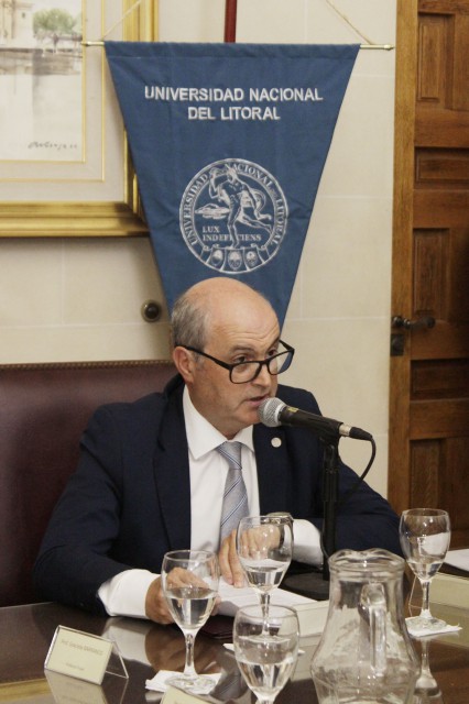 “Para los cuatro años que viene tenemos cuatro grandes ejes de trabajo que nos comprometemos desde hoy a cumplir. En primer lugar, atender a los desafíos del grado: la acreditación de la carrera de Abogacía y la revisión de nuestras prácticas de enseñanza y trayectos curriculares, constituirá un objetivo central. El segundo gran objetivo refiere al posicionamiento de la FCJS en un escenario global: el desarrollo de nuestras carreras de cuarto nivel en América del Sur, la creación del Instituto de Estudios Avanzados del Litoral y la participación en redes internacionales de investigación, enseñanza y extensión. El tercer objetivo consistirá en seguir trabajando en la puesta en valor de nuestro edificio histórico, con especial consideración de la Biblioteca Pablo Vrillaud y su refuncionalización. Y por último, trabajar el rol protagónico de la Facultad en el proyecto ‘Santa Fe Ciudad de la Constitución’, integrándonos a la sinergia de las instituciones que están trabajando para concretar el perfil de Santa Fe como el centro del pensamiento constitucional argentino”, sintetizó Aga.