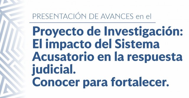 El martes 18 de abril de 2023, a las 18:00, se presentarán los avances del proyecto de investigación El Impacto del Sistema Acusatorio en la respuesta judicial. Conocer para fortalecer.