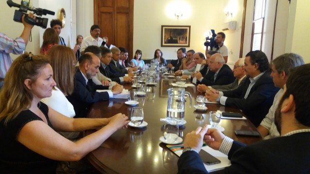 El informe de avance de la primera etapa de este trabajo fue entregado por la UNL al gobernador de la provincia, Miguel Lifschitz, en una reunión que se realizó el lunes 5 de diciembre en Casa de Gobierno, con la presencia de los decanos de la FICH, Raúl Pedraza, y de la FCJS, Javier Aga; el secretario de Vinculación Tecnológica y Desarrollo Productivo de la UNL, Daniel Scacchi, e integrantes del equipo que lleva adelante el servicio.