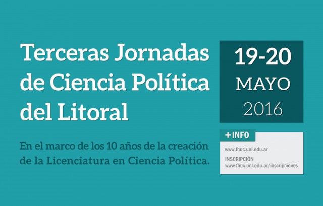 El 19 y 20 de mayo tendrán lugar en la Facultad de Humanidades y Ciencias (FHUC) y en la Facultad de Ciencias Jurídicas y Sociales (FCJS) de la Universidad Nacional del Litoral (UNL), las 3º Jornadas de Ciencia Política del Litoral. Las mismas son organizadas por docentes y estudiantes de la carrera, y cuentan con el auspicio de la Sociedad Argentina de Análisis Político (SAAP).