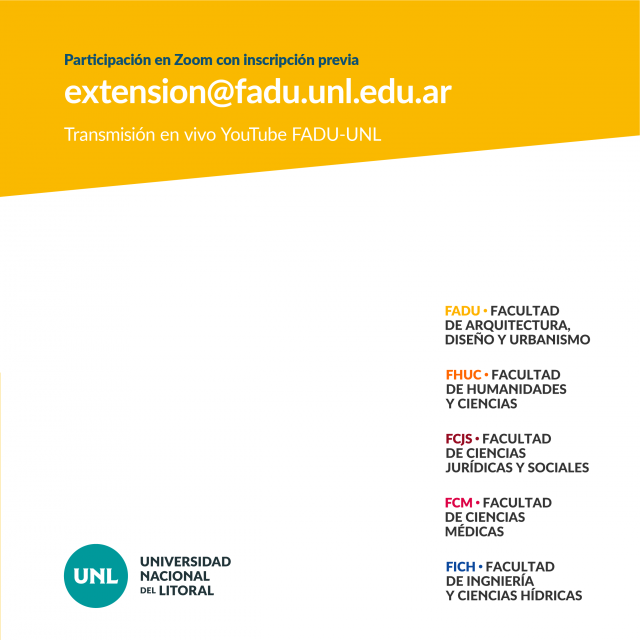 Las inscripciones para participar de este conversatorio, que será moderado por Andrea Valsagna, son gratuitas y se realizan en www.fadu.unl.edu.ar. Cabe señalar que, además, será transmitido en vivo por el canal de YouTube de FADU-UNL.